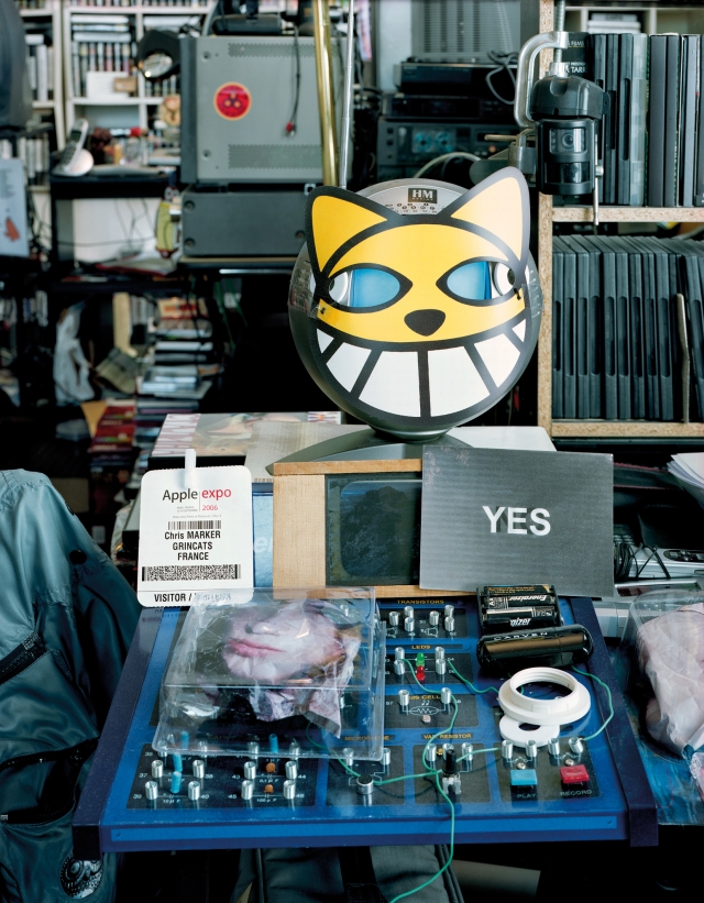 “Chris had a garage, a huge studio with drainpipes all across it. It was vast, and he put these little rolls of films all along the drainpipes, and then divided it onto countries, so you had Columbia, Peru, Cuba, Africa and so on. I entered this garage to find all these films from all these countries: the whole world was there. Right at the end there was Chris Marker on a platform with his editing table, and he looked like God. You had to walk past these films to reach him and sit down”.