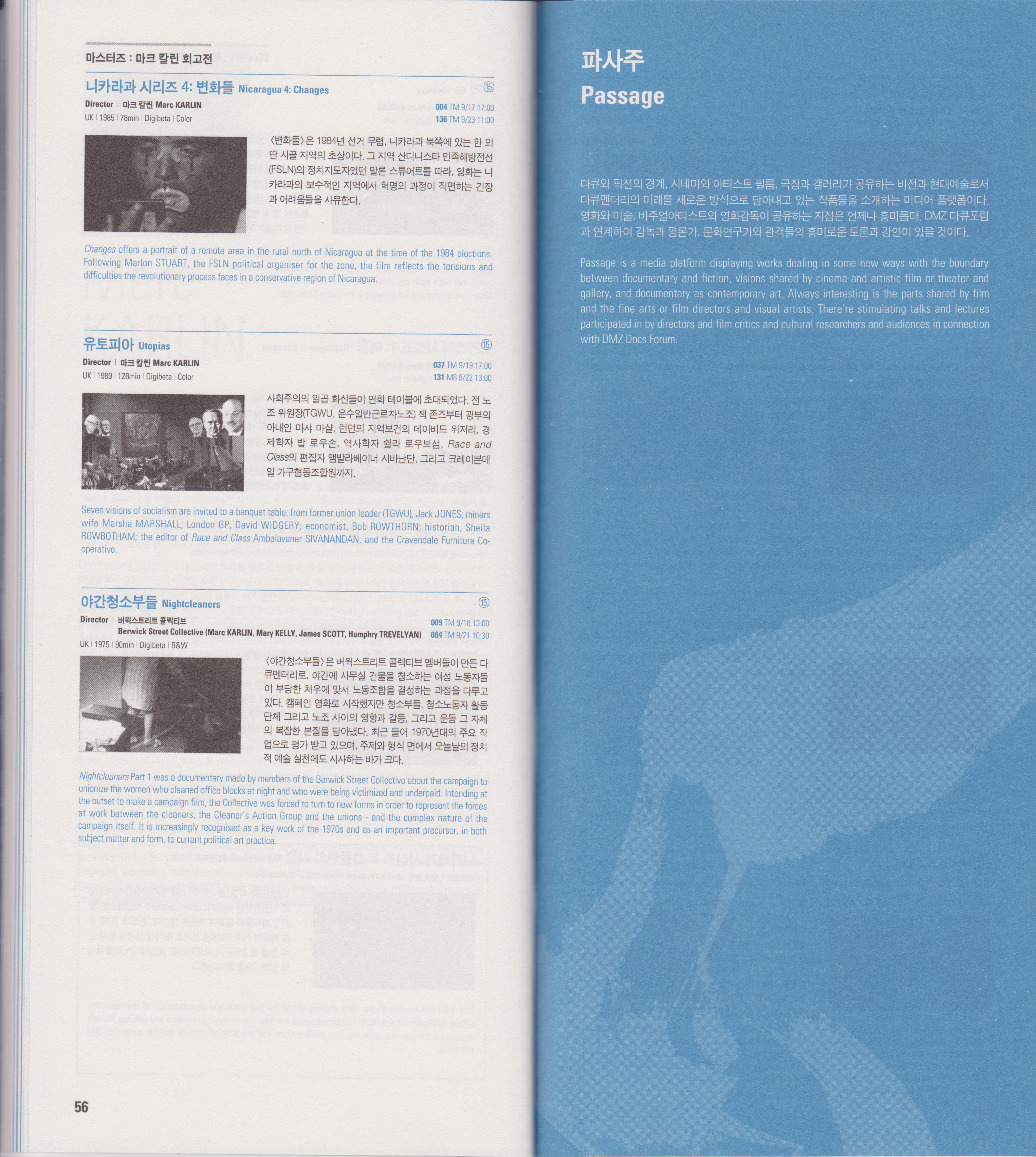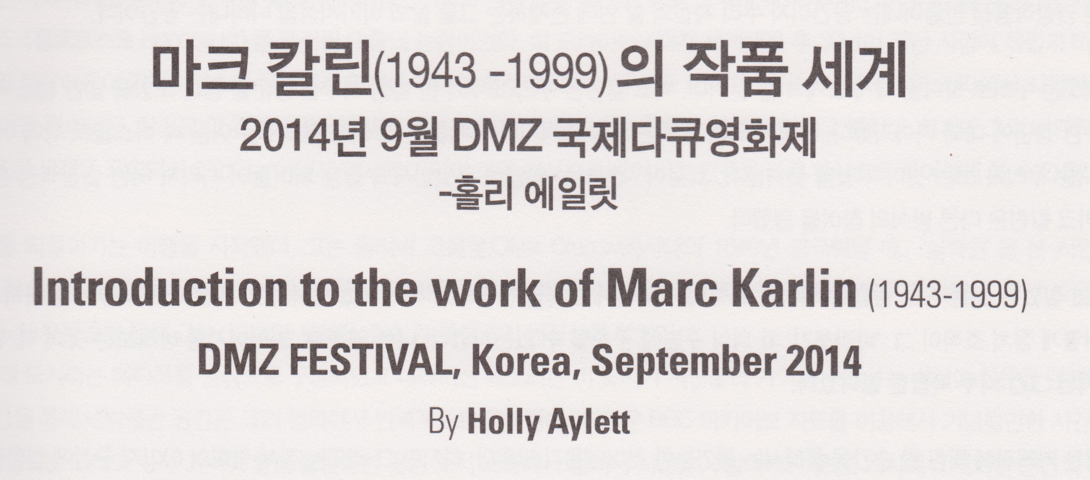 The festival held last month presented more than 110 documentaries from around the world, including a retrospective on Marc Karlin’s work in Passage – a section committing to experimental form in documentary. Marc Karlin Archive’s Holly Aylett was present in Paju city to introduce the work of Marc Karlin.
