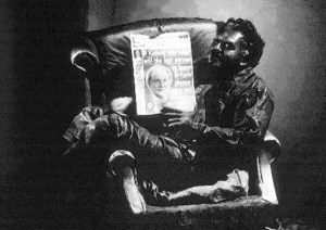 MK: Yes, it was about a man railing – I mean it was Don Quixote… Sort of – he will fight and he is single-handedly going to defeat Murdoch. It’s his ambition. But, we all do, you know… Walking along the street: Yes, I’m going to get rid of Blair tomorrow by twelve noon, or I’m going to revolutionise this or I’m going to transform that! He’s a daydreamer, he’s a liberal daydreamer, which of course makes him totally inefficient. So, in that sense he is a strange funny person with these children he can’t quite get around – twins who are totally awful. He’s continuously bemused.